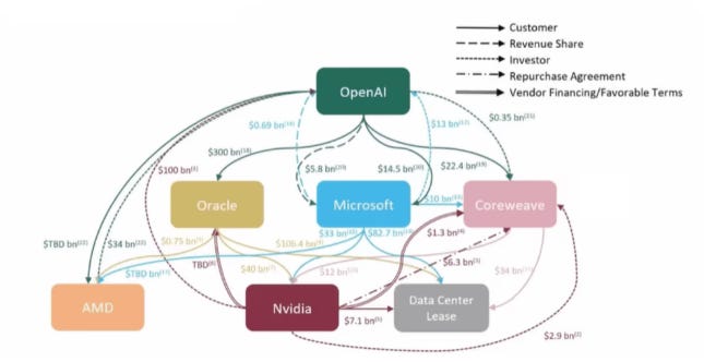 Hoy hay algo parecido en el mundo IA: compañías de chips, nubes y modelos se pagan entre ellas... pero con una gran diferencia.
