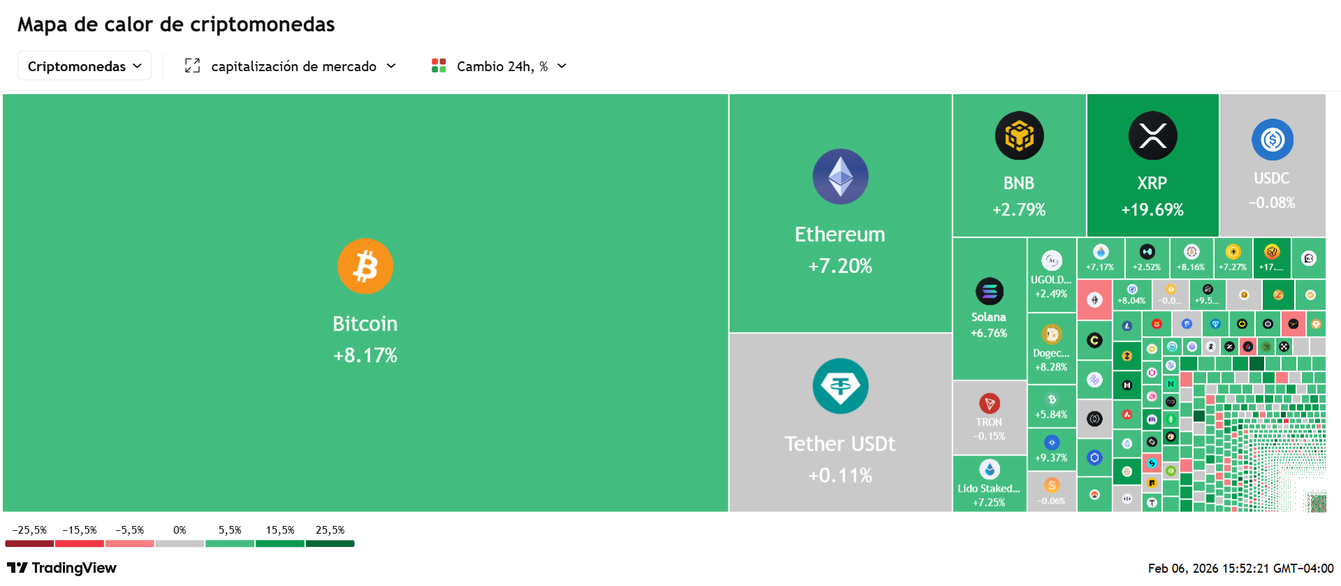 Bitcoin (BTC): Recupera con fuerza los $70,396.2, subiendo un +6.97%. Ayer tocamos fondo en $65k, y hoy estamos $5k arriba. Volatilidad pura.