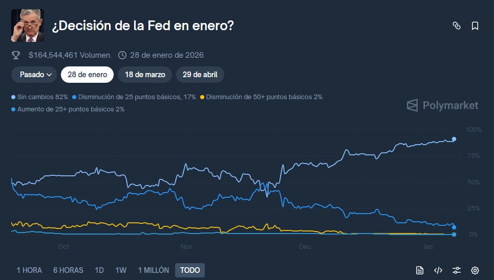 Inflación y Empleo se enfrían: Suena mal, pero para nosotros es bueno. Si la economía gringa se debilita, la Fed tiene que bajar las tasas. Ahorita, el mercado dice que en enero no pasará nada (82% de probabilidades), pero un mal reporte de empleos este viernes podría cambiar el juego para marzo.