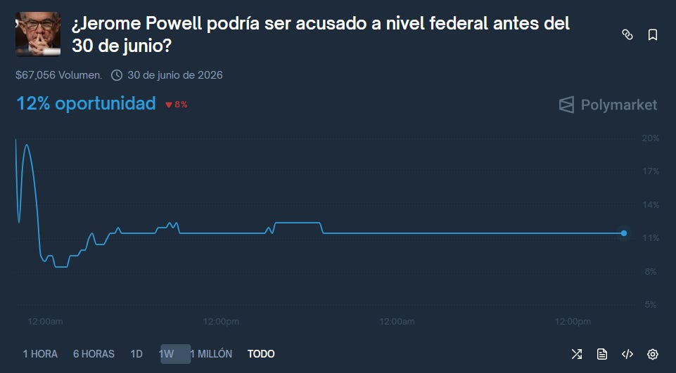 Si Powell es destituido o renuncia por presión criminal, el mercado percibirá que la Fed ha perdido su independencia. Cuando los políticos controlan la impresora de dinero, la moneda suele devaluarse. En ese escenario, el Bitcoin (oro digital) y el oro físico se convierten en los únicos botes salvavidas. Por eso vemos a BTC subiendo a pesar de la noticia: el mercado se está protegiendo contra la posible inestabilidad del dólar.