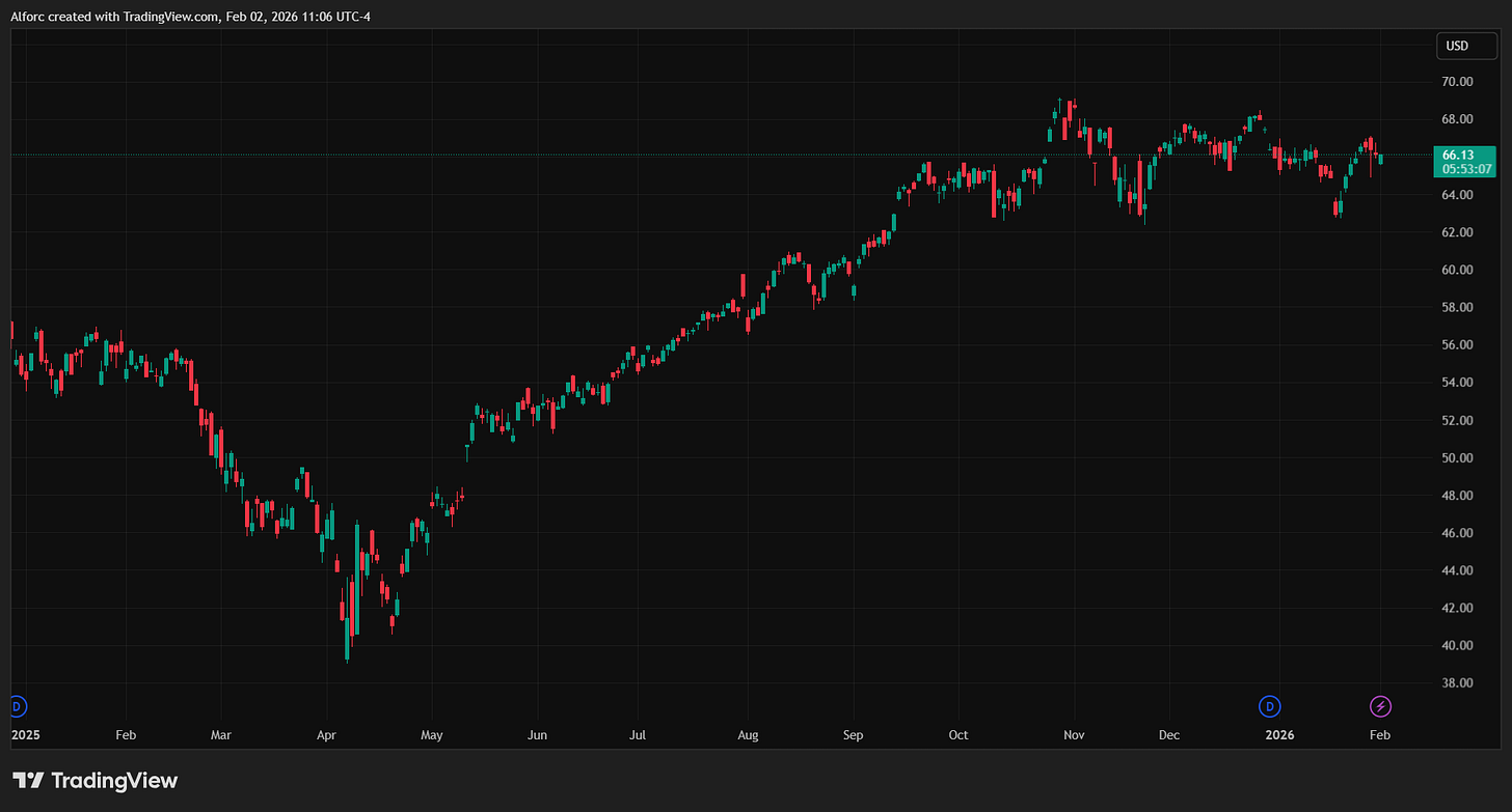 Mientras nosotros sufrimos en $78k, el mercado de acciones está cambiando de piel. La era de “solo comprar las 7 Magníficas” (Tech) se frenó: