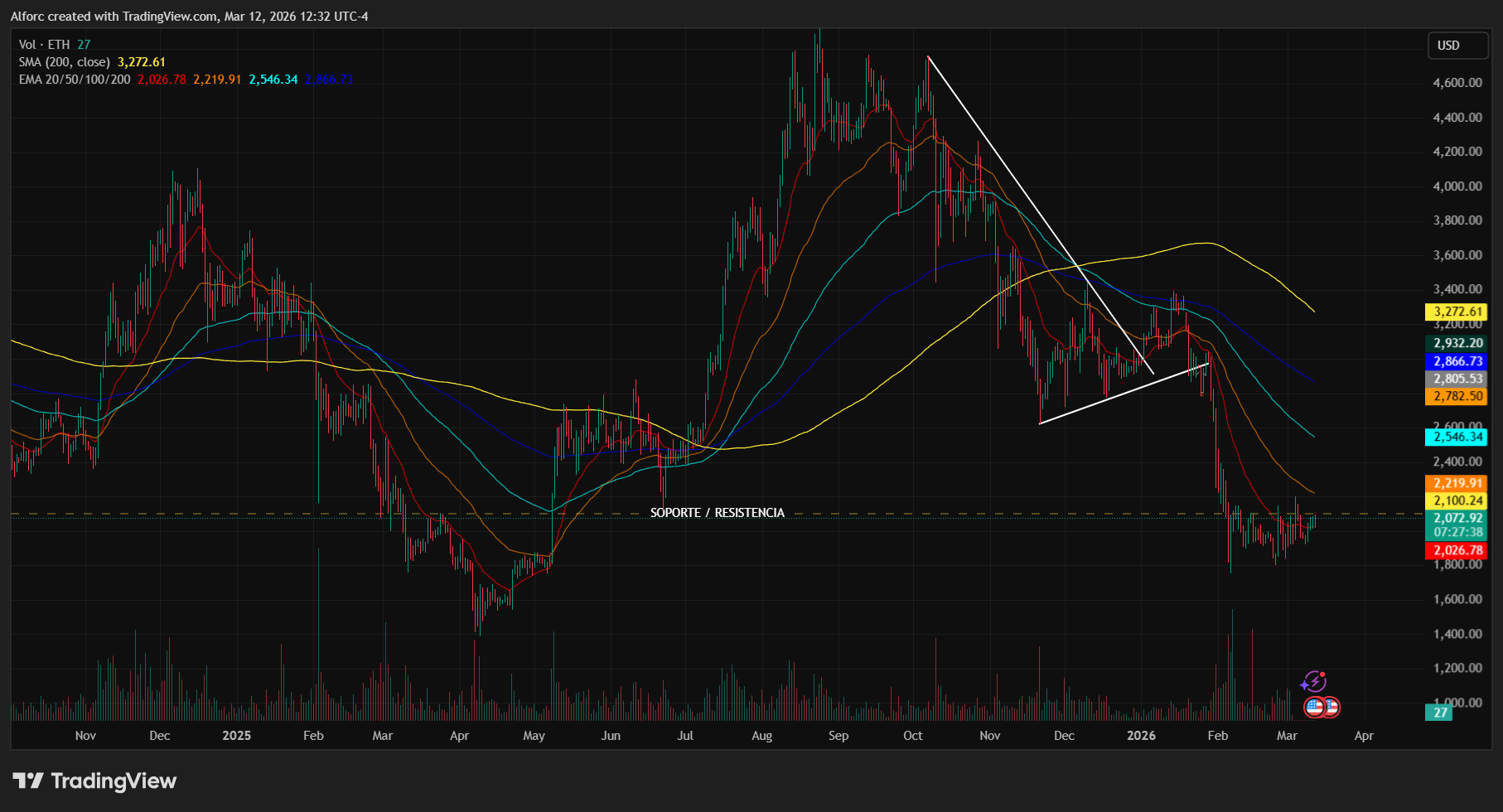Ethereum (ETH): En $2,049.11, manteniéndose casi plano con un -0.31%. Guarda este grafico.