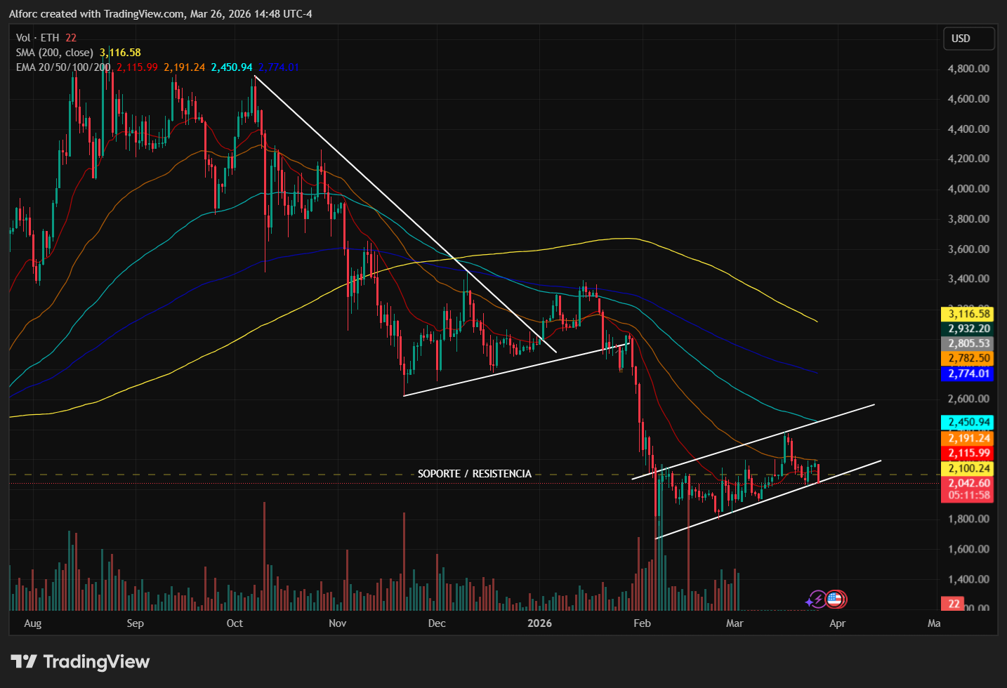 Ethereum (ETH): Se desangra un -5.66%, cotizando en $2,041.